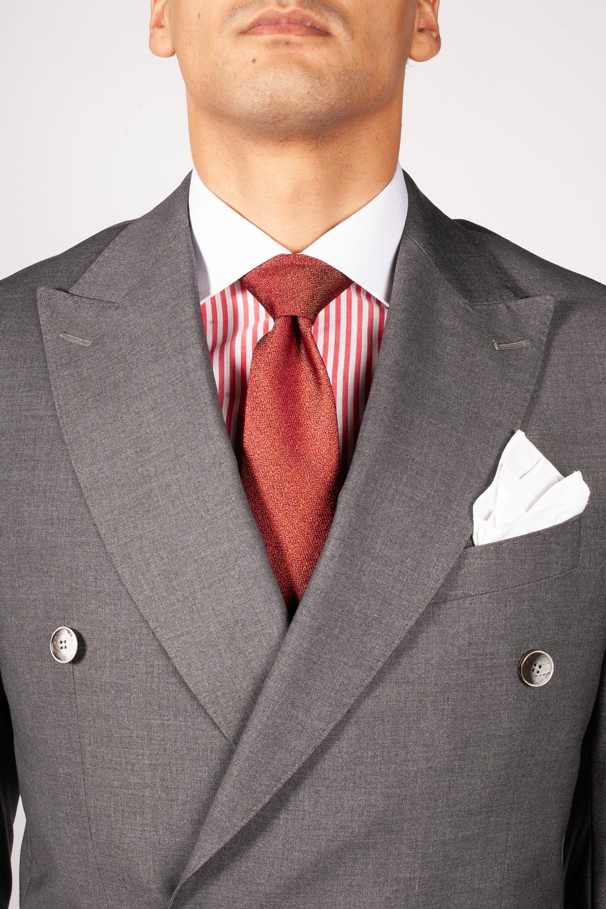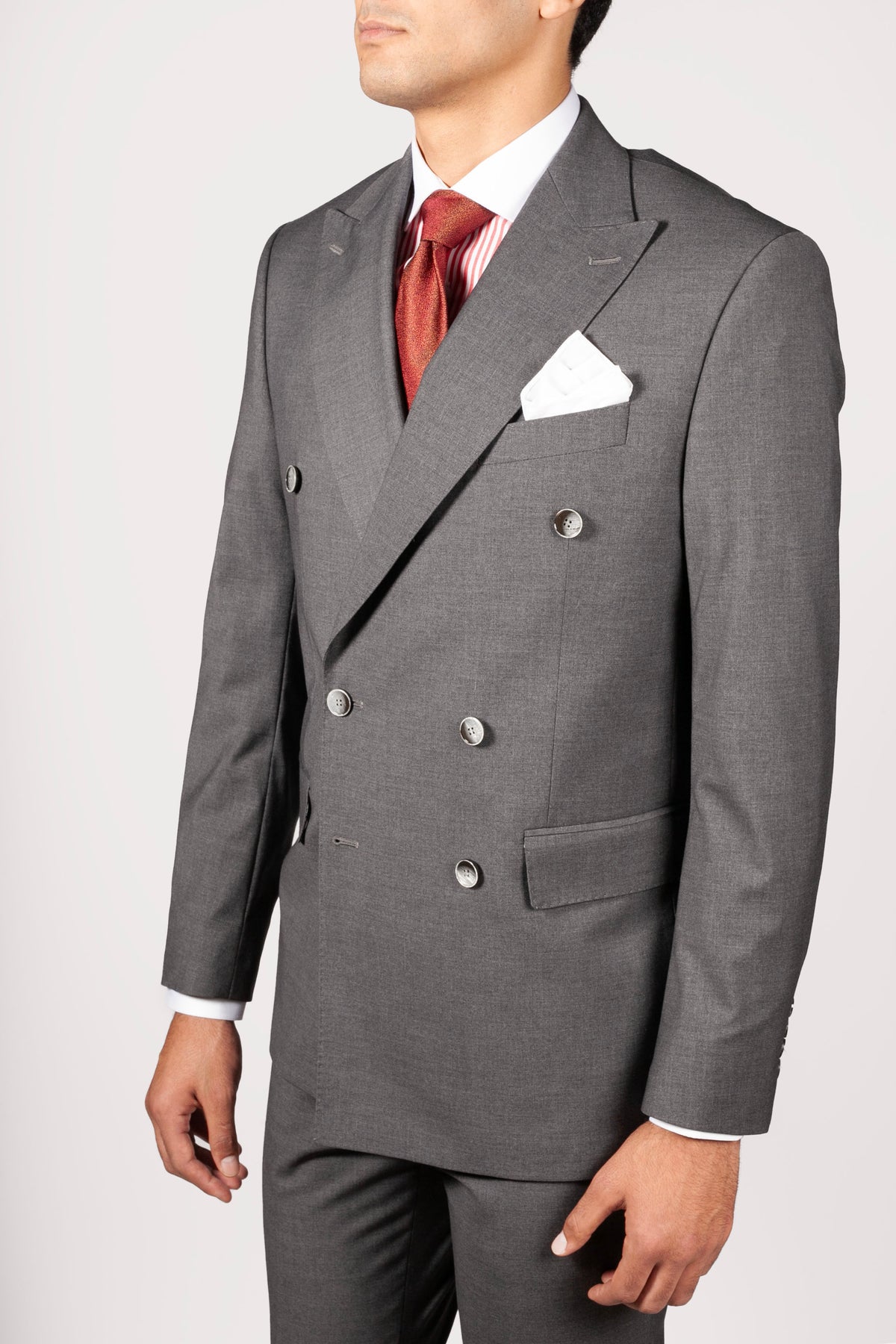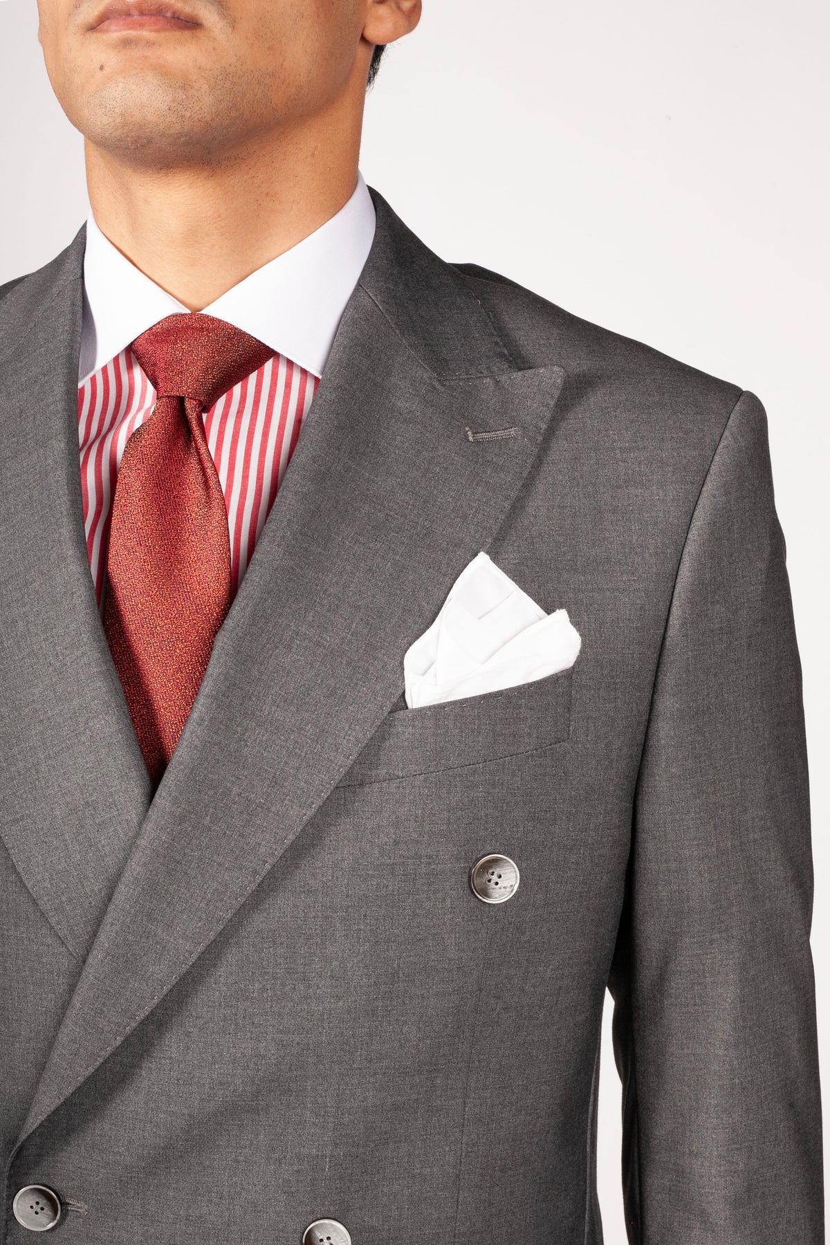Ce superbe costume croisé gris est parfait dans un univers professionnel , mais est aussi apprécié pour les grands événements ,mariage, cocktail. doté d'un revers peak lapel signature de son style italien, de bouton en nacre ,et de vrai boutonnière aux manches, d'une épaule à la romaine, de coupe semi ajusté il convient à une très grande majorité de gentlemen, il est conçu avec le lin de la maison Giuseppe Bellora , une des plus belle gamme italienne.